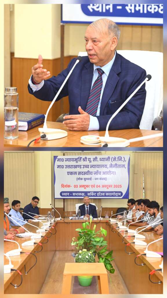 माननीय न्यायमूर्ति (सेवानिवृत्त) श्री यू.सी. ध्यानी की अध्यक्षता में गठित एकल सदस्यीय जांच आयोग द्वारा सर्किट हाउस, काठगोदाम, हल्द्वानी में दो दिवसीय जनसुनवाई एवं जनसंवाद कार्यक्रम आयोजित किया गया।