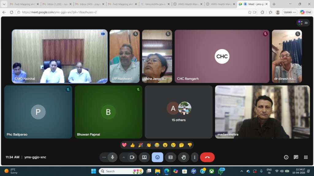 नैनीताल, 16 अप्रैल 2026: मुख्य चिकित्सा अधिकारी डॉ. एचसी पंत ने समस्त केंद्रों, मुख्य चिकित्सा अधीक्षकों (सीएमएस) एवं मुख्य चिकित्सा अधिकारियों (एमओआईसी) के साथ वर्चुअल बैठक आयोजित की। बैठक में शत प्रतिशत संस्थागत प्रसव एवं टीबी मुक्त अभियान (टीबी 100) पर विशेष जोर दिया गया।शत प्रतिशत संस्थागत प्रसव एवं टीकाकरण पर निर्देशडॉ. पंत ने सभी चिकित्सालयों, ब्लॉकों, आयुष्मान आरोग्य मंदिरों एवं उपकेंद्रों पर गर्भवती महिलाओं को समय पर सुविधाएं उपलब्ध कराने के निर्देश दिए। उन्होंने बच्चों के समुचित टीकाकरण, शत प्रतिशत संस्थागत प्रसव को बढ़ावा देने तथा जनकल्याणकारी योजनाओं जैसे जननी सुरक्षा योजना, ईजा बोई एवं परिवार कल्याण की जानकारी देने पर बल दिया। टीबी एवं गैर संक्रामक रोग (एनसीडी) स्क्रीनिंग को प्रोत्साहित करने हेतु टीमों को गांव-गांव, घर-घर जाकर जागरूक करने के आदेश दिए गए।टीवी मुक्त अभियान के तहत सभी गर्भवती महिलाओं को टीबी के बारे में काउंसलिंग एवं बलगम जांच की सलाह दी जा रही है। एनीमिक या उच्च जोखिम वाली गर्भवती महिलाओं को चिन्हित कर बर्थ प्लान के अंतर्गत निकटतम केंद्र पर संस्थागत प्रसव सुनिश्चित करने के निर्देश जारी किए गए। जनपद में शत प्रतिशत संस्थागत प्रसव लक्ष्य को प्राप्त करने हेतु सभी ब्लॉकों एवं क्षेत्रों में जागरूकता अभियान निरंतर संचालित करने पर जोर दिया गया।आयुष्मान शिविरों की सफलता हेतु विशेष निर्देशआयुष्मान स्वास्थ्य शिविरों को शत प्रतिशत सफल बनाने के लिए सीएचओ, एएनएम एवं आशा कार्यकर्ताओं को अधिक से अधिक लाभार्थियों तक पहुंचाने के आदेश दिए गए। मुख्य चिकित्सा अधिकारी ने जनजागरूकता बढ़ाने हेतु आशा, एएनएम एवं सीएचओ द्वारा क्षेत्रों में व्यापक प्रचार-प्रसार करने के निर्देश दिए।बैठक में प्रमुख उपस्थित अधिकारीबैठक में अपर मुख्य चिकित्सा अधिकारी डॉ. संजीव खर्कवाल, डॉ. रजत भट्ट, डॉ. अजय शर्मा, डॉ. उषा जंगपांगी, महिला चिकित्सालय हल्द्वानी की चिकित्सा अधीक्षक, जिला प्रतिरक्षण अधिकारी डॉ. अजय शर्मा, जिला क्षय रोग अधिकारी डॉ. राजेश ढकरियाल, समस्त प्रभारी चिकित्सा अधिकारी, जिला कार्यक्रम प्रबंधक मदन मेहरा, जिला डाटा प्रबंधक पंकज तिवारी, कम्युनिटी मोबिलाइजर, आईईसी अधिकारी, ब्लॉक कार्यक्रम प्रबंधक एवं समस्त जिला/ब्लॉक कार्यक्रम प्रबंधक उपस्थित रहे।चिकित्सा स्वास्थ्य एवं परिवार कल्याण विभाग, जनपद नैनीताल