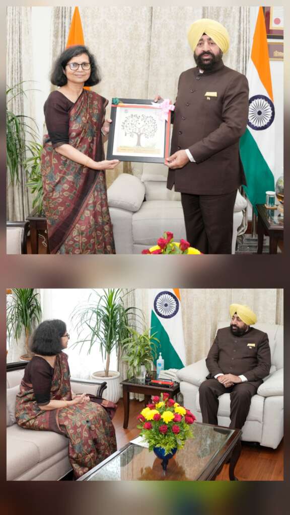 Governor Lt Gen Gurmit Singh (Retd) met with Mrs. Bharti, Director of the Indira Gandhi National Forest Academy (IGNFA), Dehradun, at the Raj Bhavan on Thursday.During the courtesy meeting, Mrs. Bharti briefed the Governor about the academy’s ongoing training programs and its initiatives related to environmental conservation. Appreciating the academy’s efforts, the Governor emphasized the need to promote innovations in forest preservation and climate balance, as well as to enhance public awareness in these areas.