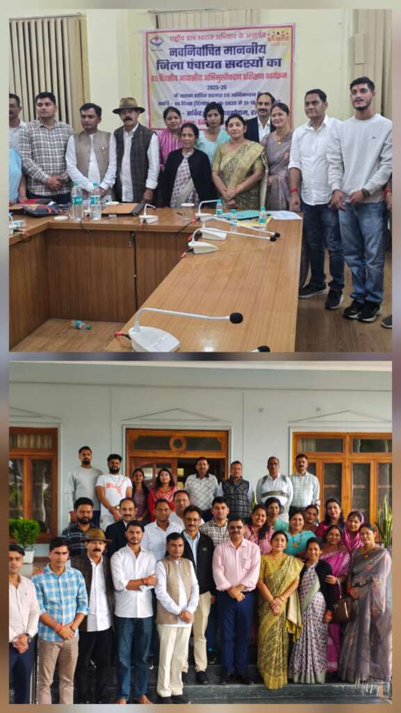 हल्द्वानी। राज्य अतिथि गृह, काठगोदाम में आयोजित हुआ पांच दिवसीय प्रशिक्षण कार्यक्रमराष्ट्रीय ग्राम स्वराज अभियान के अंतर्गत नवनिर्वाचित अध्यक्ष, उपाध्यक्ष एवं जिला पंचायत सदस्यों का पांच दिवसीय आवासीय अभिमुखीकरण प्रशिक्षण कार्यक्रम राज्य अतिथि गृह (सर्किट हाउस), काठगोदाम, हल्द्वानी में सम्पन्न हुआ। पंचम एवं अंतिम दिवस के सत्र की अध्यक्षता मा. अध्यक्ष श्रीमती दीपा दरम्वाल ने की।इस अवसर पर मा. उपाध्यक्ष श्रीमती देवकी देवी तथा जिला पंचायत सदस्यगण — श्रीमती लीला बिष्ट, कु. ज्योति आर्या, श्रीमती निधि जोशी, श्रीमती अनिता आर्या, श्रीमती मीना चिलवाल, श्रीमती दीपा चन्दोला, श्री डीकर सिंह मेवाड़ी, श्री प्रमोद कोटलिया, श्री यशपाल, श्रीमती सीता देवी, श्री जीशान्त कुमार, श्री हेम चन्द्र नैनवाल, श्री विपिन सिंह, श्री दीप सिंह बिष्ट एवं श्री संजय बोहरा सहित अन्य सदस्यों ने प्रतिभाग किया।प्रशिक्षण की शुरुआत मास्टर ट्रेनर श्री दिनेश महतौलिया द्वारा की गई। अपर जिलाधिकारी श्री विवेक राय ने सूचना का अधिकार अधिनियम के अंतर्गत अधिकारों व विशेष प्रावधानों पर विस्तृत जानकारी दी। श्री विकास शर्मा ने सीएम हेल्पलाइन पोर्टल द्वारा शिकायत समाधान की प्रक्रिया समझाई। आपदा प्रबंधन विशेषज्ञ श्री कमल सिंह मेहरा ने आपदा प्रबंधन से जुड़ी उपयोगी जानकारियाँ साझा कीं। वहीं एस.आई. एस.एस.पी. नैनीताल श्री प्रताप सिंह ने नवीन कानून अधिनियमों के बारे में विस्तारपूर्वक बताया।प्रशिक्षण का संचालन अपर मुख्य अधिकारी, जिला पंचायत नैनीताल श्री महेश कुमार द्वारा किया गया। समापन अवसर पर मा. अध्यक्ष श्रीमती दीपा दरम्वाल ने सभी प्रशिक्षकों, अधिकारियों, कर्मचारियों एवं सदस्यगणों का आभार व्यक्त करते हुए प्रशिक्षण के सफल समापन की घोषणा की।प्रशिक्षण में सहभागी कर्मचारियों में कार्य अधिकारी श्रीमती ऋचा जोशी, वित्तीय परामर्शदाता श्री शिवराज सिंह बिष्ट, कर अधिकारी श्री विजय कुमार सिंह बिष्ट, लेखाकार श्री गोविन्द सिंह भौर्याल, प्रधान सहायक श्री अनिल बहादुर चन्द, राजस्व निरीक्षक श्री चन्द्रपाल सिंह बिष्ट, कनिष्ठ सहायक मयंक कफल्टिया व अक्षर कुमार सहित अन्य कर्मचारियों ने भी प्रतिभाग किया।