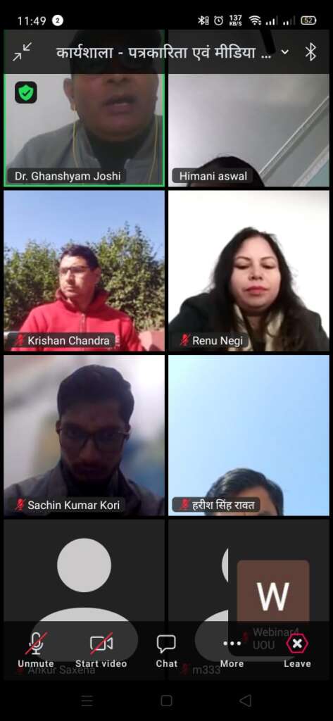 उत्तराखंड मुक्त विश्वविद्यालय में पत्रकारिता छात्रों के लिए चार दिवसीय ऑनलाइन शोध कार्यशाला संपन्न,,