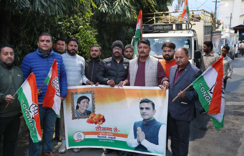 ठंड के प्रकोप में जनता के साथ विधायक सुमित हृदयेश ने जलौनी लकड़ी से भरी गाड़ियों को दिखाई झंडी,,