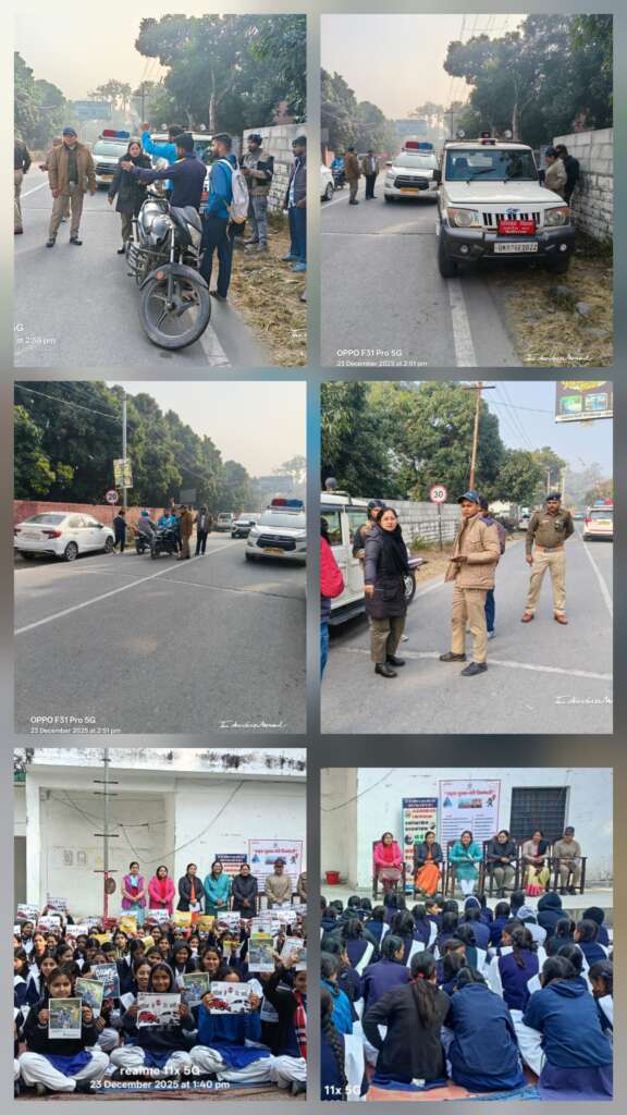 हल्द्वानी संभागीय परिवहन अधिकारी। प्रभारी अरविंद पांडे के निर्देशों पर आज परिवहन विभाग ने शहर और आसपास के क्षेत्रों में सघन अभियान चलाया। ठंड और कोहरे के कारण बढ़े खतरे को देखते हुए वाहनों की विशेष जांच की गई।कालाढूंगी में संयुक्त अभियान।परिवहन अधिकारी श्रीमती अनुभा आर्य ने स्थानीय पुलिस के साथ कालाढूंगी क्षेत्र में संयुक्त चेकिंग की। अनधिकृत वाहनों के खिलाफ कार्रवाई करते हुए 25 वाहनों के चालान किए गए। चालक-स्वामियों को सड़क सुरक्षा के प्रति जागरूक किया गया। कालाढूंगी थाने के सब-इंस्पेक्टर बाबू सिंह और उनकी टीम भी अभियान में शामिल रहीं।छात्राओं को सड़क सुरक्षा का पाठ
