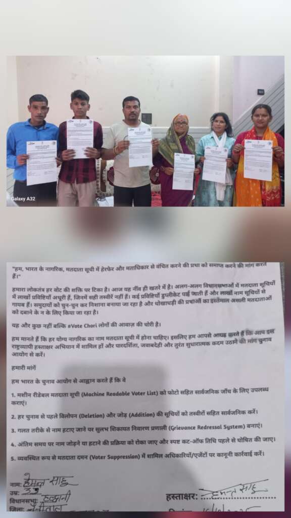 राजपुरा में ‘वोट चोरी’ हस्ताक्षर अभियान के तहत 50 से अधिक लोगों ने भरे फार्म,