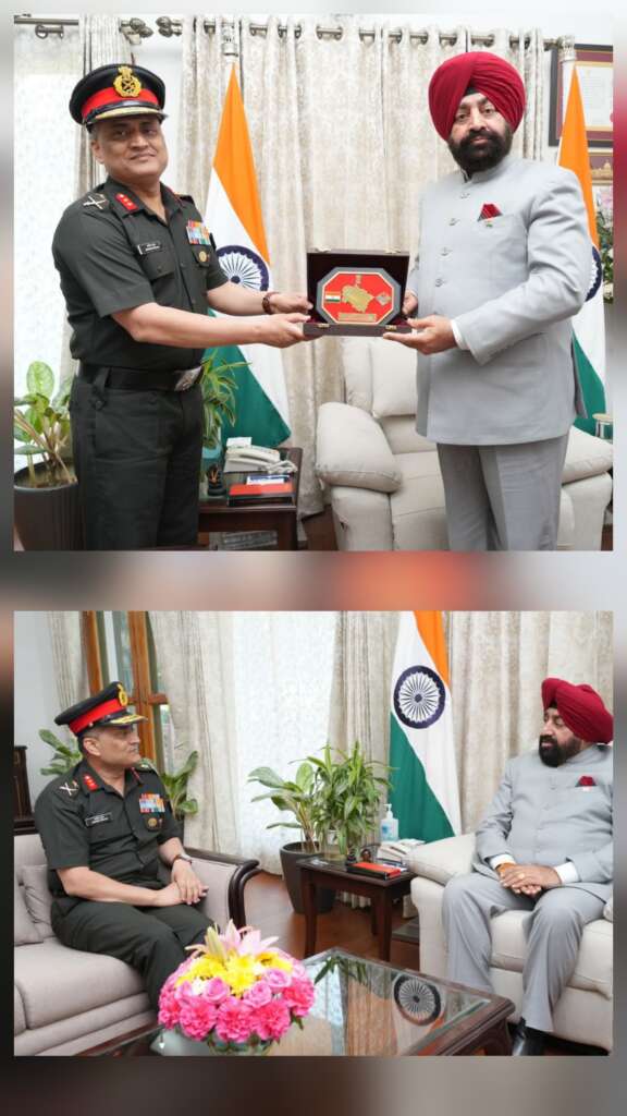 राज्यपाल लेफ्टिनेंट जनरल गुरमीत सिंह से 14 डिवीज़न के नवनियुक्त जीओसी मेजर जनरल अमरेश गुंजन ने लोक भवन में की शिष्टाचार भेंट