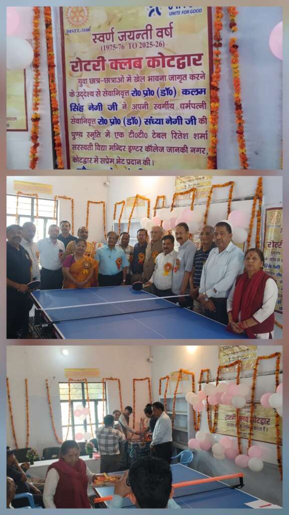 सरस्वती विद्या मंदिर कोटद्वार में रोटरी क्लब से टेबल टेनिस मेज व खेल सामग्री प्राप्त,,