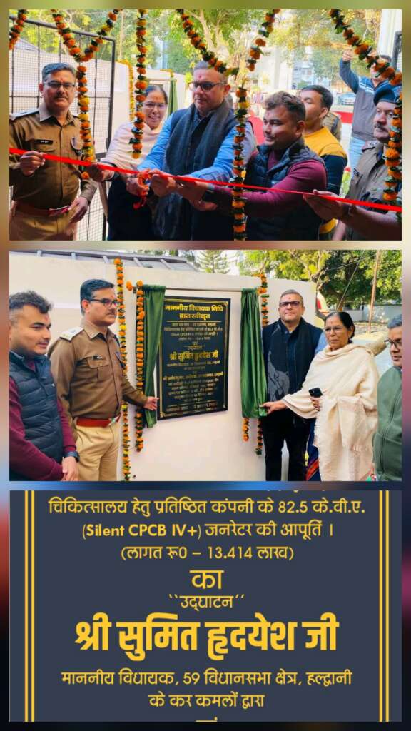 हल्द्वानी। उप कारागार चिकित्सालय हल्द्वानी को विधायक निधि से प्राप्त Hi-Tech 82.5 KVA Silent CPCB IV+...