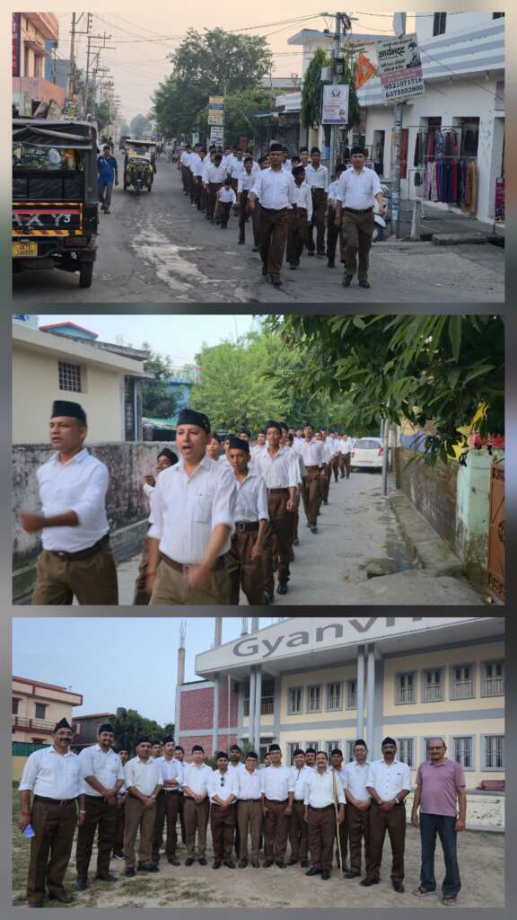 कोटद्वार। राष्ट्रीय स्वयंसेवक संघ (आरएसएस) के शताब्दी वर्ष के उपलक्ष्य में सोमवार देर सायं सुदर्शन उपनगर की मानपुर बस्ती में श्री विजयदशमी उत्सव का आयोजन किया गया। उत्सव के दौरान स्वयंसेवकों ने शस्त्र पूजन और पथ संचलन कर संगठन की एकता और अनुशासन का परिचय दिया।कार्यक्रम का शुभारंभ आरएसएस के प्रांत कार्यसमिति सदस्य एवं मुख्य वक्ता ऋतुराज, कार्यक्रम अध्यक्ष राकेश काला और नगर कार्यवाह प्रशांत कुकरेती ने प्रभु श्रीराम और मां भारती के चित्र के समक्ष शस्त्र पूजन के साथ किया। स्वयंसेवक पूर्ण गणवेश में मानपुर बस्ती बेलाडाट से आंचल दूध डेयरी, पदमपुर चौक होते हुए ज्ञानवृक्ष विद्यालय तक अनुशासित पथ संचलन में शामिल हुए। इस दौरान बस्ती क्षेत्र की महिलाओं ने पुष्पवर्षा कर स्वयंसेवकों का गर्मजोशी से स्वागत किया।मुख्य वक्ता ऋतुराज ने अपने संबोधन में संघ की सौ वर्ष की गौरवपूर्ण यात्रा पर प्रकाश डालते हुए कहा कि यह यात्रा त्याग, सेवा, अनुशासन और समर्पण का अनुपम उदाहरण है। उन्होंने डॉ. हेडगेवार, गुरुजी, बाबासाहेब देवरस और रज्जू भैया सहित सभी पूर्व संघ प्रमुखों का स्मरण करते हुए संगठन को घर-घर तक पहुंचाने पर बल दिया।उन्होंने युवाओं से आह्वान किया कि मातृभूमि की रक्षा के लिए शास्त्र के साथ शस्त्र भी आवश्यक हैं। उन्होंने कहा कि कलयुग में संगठन ही शक्ति है, और आज संघ की शाखाओं से देश और विश्व में भारतीय संस्कृति एवं संस्कारों का प्रभाव फैल रहा है।कार्यक्रम में नगर कार्यवाह प्रशांत कुकरेती, सुदर्शन उपनगर कार्यवाह विजेंद्र मैंदोला, सहकार्यवाह रोहित बलोदी, मणिराम शर्मा, सतीश देवरानी, हिमांशु द्विवेदी, अमित कुमार सहित 60 से अधिक स्वयंसेवक पूर्ण गणवेश में उपस्थित रहे।