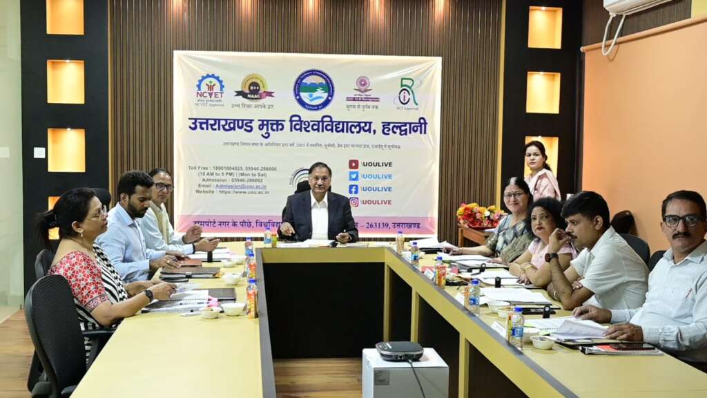 Haldwani — The 8th meeting of the Planning Board of Uttarakhand Open University was held today at the university headquarters in Haldwani under the chairmanship of Vice-Chancellor Prof. Naveen Chandra Lohani. The meeting focused on the university’s growth and development plans, with detailed discussions on 21 proposals, all of which were unanimously approved. The minutes of the 7th meeting were confirmed earlier in the session.Members present praised the administration’s proposals as visionary and effective for strengthening the state’s higher and distance education system. They noted that the university is setting new benchmarks in quality and accessible education through novel academic, research, and infrastructural initiatives.Key Approved ProposalsProvision of necessary resources for smooth functioning of the Child Care Centre and Women’s Studies Centre.Landscape development of the university campus.Establishment of a Transit Hostel and Seminar Hall.Allocation of additional land for new courses in line with the National Education Policy 2020.Setting up an Incubation Centre, Industry-Academia Cell, Defence Cell, Research Council, and Ethics Committee.Creation of the Himalayan Studies Centre and Heritage Museum.Development of regional centres and libraries.Infrastructure enhancement of the community radio ‘Hello Haldwani’.Expected ImpactMembers expressed confidence that these initiatives will add momentum and direction to the university’s academic, research, and community activities, while further strengthening and ensuring the credibility of distance education in the state.Meeting AttendanceRegistrar Dr. Khemraj Bhatt read out all the proposals. External members included NTA Chairman Prof. Pradeep Kumar Joshi and IGNOU’s Prof. Shachi Sah. From the university, participants included Prof. Renu Prakash, Prof. Jitendra Pandey, Finance Controller S.P. Singh, Controller of Examinations Prof. Somesh Kumar, Dr. Neerja Singh, and Dr. Harish Joshi.The meeting ended in a cordial atmosphere, with Vice-Chancellor Prof. Lohani thanking all members and reaffirming the university’s commitment to developing an inclusive, comprehensive, and empowered education system in the state.