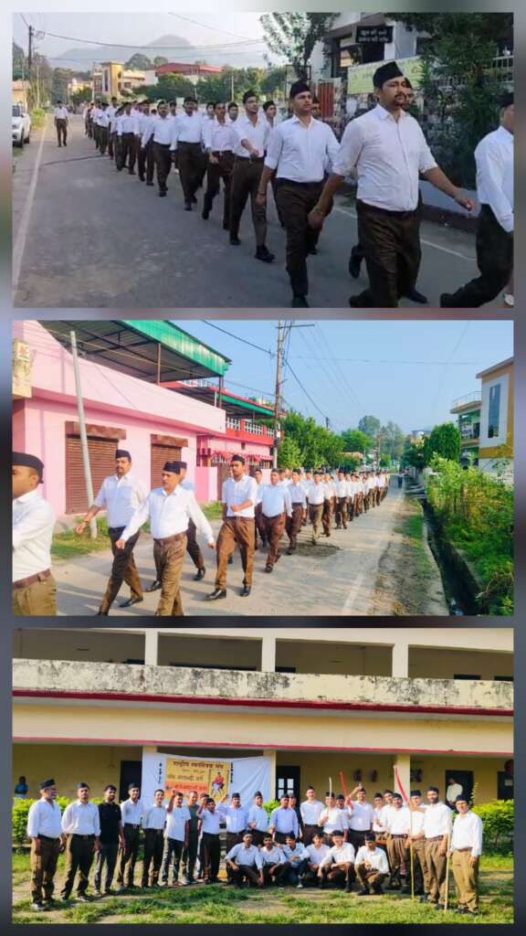 कोटद्वार। राष्ट्रीय स्वयंसेवक संघ जिला कोटद्वार के सुदर्शन उपनगर की शिवपुर बस्ती में रविवार को श्री विजयदशमी उत्सव एवं संघ के शताब्दी वर्ष के उपलक्ष्य में शस्त्र पूजन एवं एकत्रीकरण कार्यक्रम आयोजित किया गया।कार्यक्रम का शुभारंभ संगठनात्मक जिला कोटद्वार के जिलाप्रचारक श्री कमल जी एवं कार्यक्रम अध्यक्ष विनोद ध्यानी जी द्वारा शस्त्र पूजन के साथ किया गया। मुख्य वक्ता श्री कमल जी ने स्वयंसेवकों को शताब्दी वर्ष की बधाई देते हुए कहा कि राष्ट्रीय स्वयंसेवक संघ विश्व का सबसे बड़ा सामाजिक संगठन है, जो नवरात्रि के पश्चात मां भवानी की आराधना और सत्य की विजय के साथ सतत राष्ट्रहित में कार्य कर रहा है।उन्होंने कहा कि 100 वर्षों की यात्रा में अनेक बाधाओं के बावजूद संघ अपने लक्ष्य की ओर अग्रसर है। संघ का मुख्य उद्देश्य भारत को परम वैभव तक पहुंचाना है, जिसके लिए स्वयंसेवक सतत कार्यरत हैं। उन्होंने भगवान श्रीराम के उदाहरण से प्रेरणा लेते हुए कहा कि जिस प्रकार श्रीराम ने 14 वर्षों के वनवास के बाद असत्य पर सत्य की विजय प्राप्त की थी, उसी प्रकार स्वयंसेवक भी समाज में प्रत्येक वर्ग तक संघ के कार्यों की किरण पहुंचा रहे हैं।कार्यक्रम के पश्चात स्वयंसेवकों ने शिवपुर बस्ती के मुख्य मार्ग पर अनुशासित पथ संचालन किया। इस अवसर पर जिला प्रचारक कमल जी, नगर/खंड प्रचारक गौरव, नगर कार्यवाह प्रशांत कुकरेती, सुदर्शन उपनगर कार्यवाह विजेंद्र मेंदोला, सहकार्यवाह रोहित बलोदी, मनमोहन सिंह, राकेश चमोली सहित 60 से अधिक स्वयंसेवक गणवेश में उपस्थित रहे।