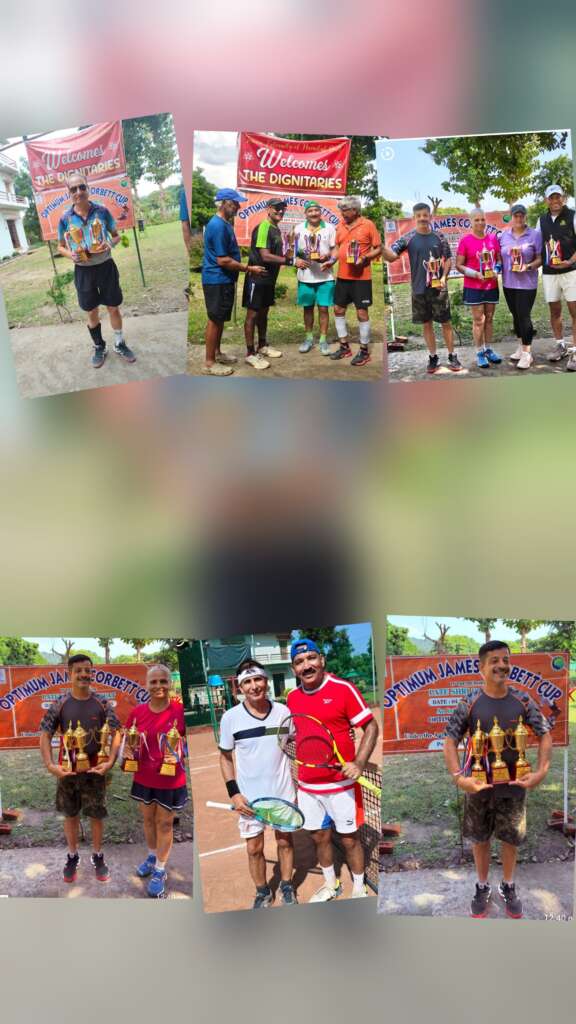 आप्टिमम टेनिस एकेडेमी, चूनाखान में आयोजित आईटीएफ मास्टर्स टेनिस टूर्नामेंट 200 का आज भव्य समापन हुआ। वर्षा के बावजूद मुकाबले समय से पूर्व पूरे किए गए। देर रात तक चले फ्लडलाइट मैचों ने दर्शकों को रोमांचित किया।कोर्ट संख्या-01 पर 60+ आयुवर्ग डबल्स फाइनल में मुरादाबाद के यशपाल अरोरा और दिल्ली के अरुण अग्रवाल की जोड़ी ने दिल्ली के पवन जैन व राकेश कोहली को कड़े मुकाबले में 6-7, 6-3, 10-5 से हराकर ट्रॉफी पर कब्जा किया। उपविजेता पवन जैन व राकेश कोहली रहे।प्रातः कोर्ट संख्या-01 पर ही 60+ सिंगल्स फाइनल में यशपाल अरोरा ने दिल्ली के सुदेश सिंह को 6-0, 6-2 से पराजित कर स्वर्ण पर कब्जा किया। सुदेश सिंह उपविजेता रहे।कोर्ट संख्या-02 पर मिक्सड डबल्स के फाइनल में दिल्ली के योगेश कोहली व विभा चौधरी ने भावना बिष्ट व महेंद्र माही को हराकर खिताब अपने नाम किया। माही महेंद्र व भावना बिष्ट उपविजेता रहे।नैनीताल के घनश्याम लाल साह को 75+ सिंगल्स वर्ग में वॉकओवर मिलने पर विजेता घोषित किया गया।समापन समारोह में पुरस्कार वितरण एकेडमी के डायरेक्टर एवं सेवानिवृत्त आयकर आयुक्त श्री देवेंद्र सिंह रावत ने किया। इस दौरान ब्रिज मोहन सिंह बिष्ट (सेवानिवृत्त प्रबंधक, एसबीआई), डीएनएस बिष्ट (सेवानिवृत्त आईजी), शंकर दत्त सती (पेट्रोल पंप मालिक), खिलाड़ी, परिवारजन व स्थानीय ग्रामीणजन उपस्थित रहे और रोमांचक मैचों का लुत्फ उठाया���.